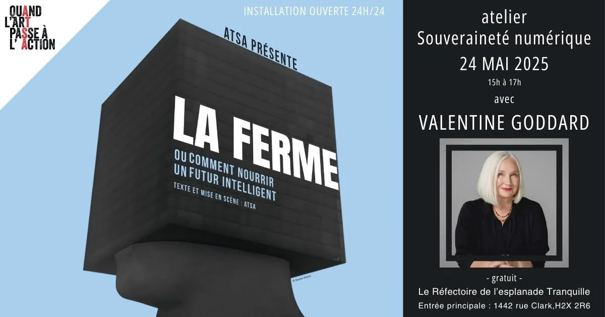 L’atelier est une activité tenue dans le cadre de La Ferme ou comment nourrir un futur intelligent, une intervention d’art social conçue par ATSA (Quand l’art passe à l’action) incluant 3 soirs de représentations de la pièce de théâtre de même que des ateliers portant sur la désinformation et la sobriété numérique.